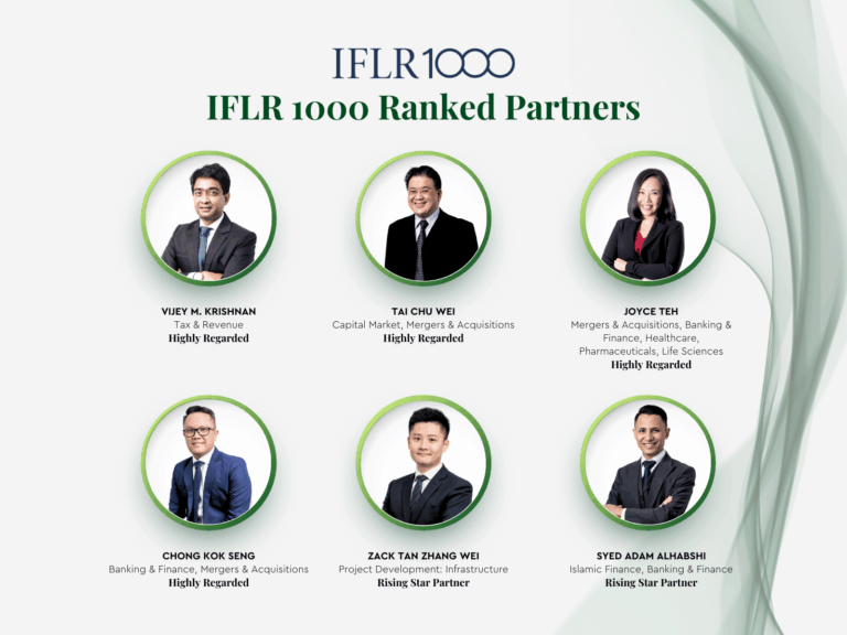 We are proud to congratulate our IFLR1000 ranked partners: Vijey M. Krishnan, Tai Chu Wei, Joyce Teh, Chong Kok Seng, Zack Tan Zhang Wei and Dr. Syed Adam Alhabshi. Their recognition reflects their dedication and expertise in delivering trusted legal…