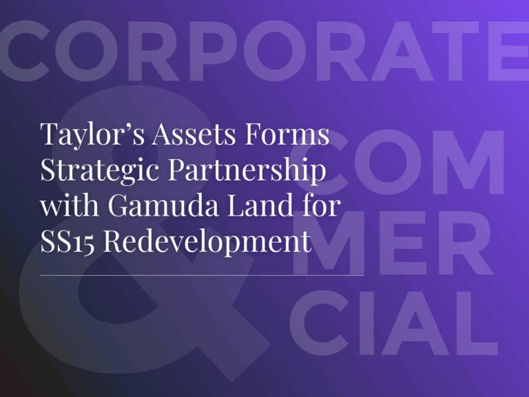 We are pleased to have represented Taylor’s Assets, the property investment and asset management arm of Taylor’s Education Group on its partnership with Gamuda Land to redevelop a prime commercial site in SS15, Subang Jaya. The redevelopment will feature serviced…